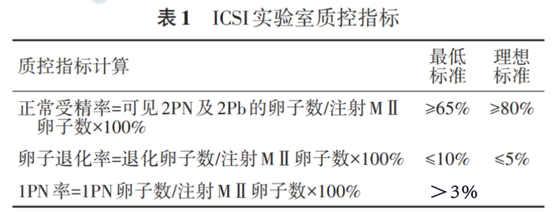 According to the 2017 Vienna Consensus and the 2018 Expert Consensus on Quality Control of Key Indicators for Chinese Embryo Laboratories, the calculation methods and standards for ICSI laboratory quality control indicators are summarized as follows. See Table 1 for details.